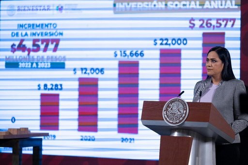 Precisó que la inversión de la Pensión para el Bienestar de las Personas con Discapacidad de 2022 a 2023 aumentará cuatro mil 577 millones de pesos, al pasar de 22 mil millones a 26 mil 577 millones de pesos; en tanto que el monto de la pensión bimestral aumentará a 2 mil 950 pesos cada dos meses.