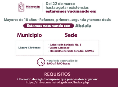 Se instalarán puestos de vacunación en municipios de las ocho jurisdicciones sanitarias como Lázaro Cárdenas, Aporo, Contepec, Epitacio Huerta, Hidalgo, Huetamo, Irimbo, Juárez, Jungapeo, Ocampo, San Lucas, Senguio, Susupuato, Tiquicheo, Tlalpujahua, Tuxpan, Tuzantla, Zitácuaro, Churintzio, Tanhuato, La Piedad, Numarán, Yurécuaro y Zináparo.