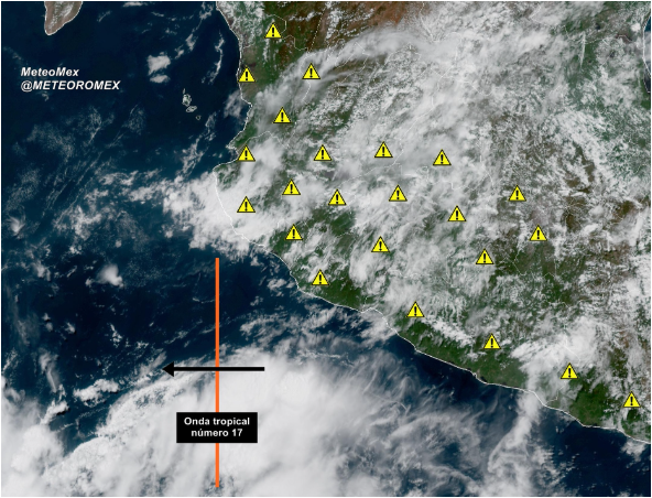 ALERTA: Esta tarde se localiza la onda tropical número 17 al sur de Nayarit, Jalisco y Colima; provocará lluvias fuertes a intensas en las próximas horas.
