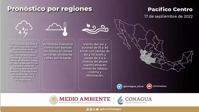 Se prevé que el meteoro ingrese a Michoacán durante la madrugada de este domingo.