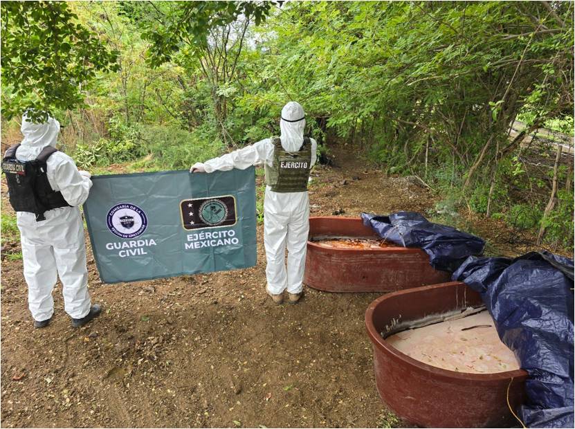 En la localidad de Piedras Blancas de esta demarcación, los agentes de la Guardia Civil y el Ejército Mexicano, realizaban patrullajes de vigilancia en caminos de terracería cuando localizaron la citada droga.