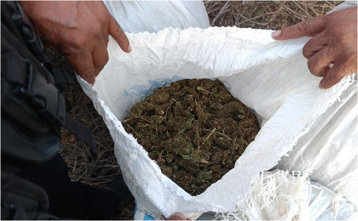 Como resultado de un operativo interinstitucional, elementos de la Secretaría de Seguridad Pública (SSP) en coordinación con la Guardia Nacional (GN) y la Fiscalía General del Estado (FGE), aseguraron aproximadamente 53 kilogramos de hierba verde seca con características propias de la marihuana, en Huetamo.