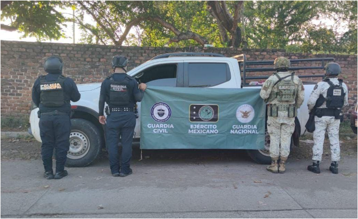 En un primer suceso efectuado, en la localidad 5 de Mayo, los elementos de la Guardia Civil, el Ejército Mexicano y la Guardia Nacional decomisaron cuatro armas de fuego calibre 7.62X39 milímetros, mil 850 cartuchos útiles, 95 cargadores, cascos y chalecos balísticos, así como una camioneta marca Nissan.
