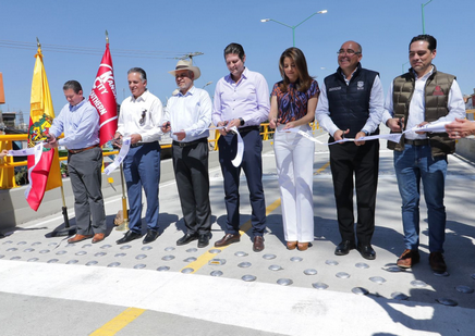 El gobernador Alfredo Ramírez Bedolla acompañó a las autoridades municipales y a Óscar del Cueto Cuevas, presidente y gerente general de Kansas City Southern México, a la inauguración del puente a desnivel de la avenida Siervo de la Nación, en la colonia Agustín Arriaga.