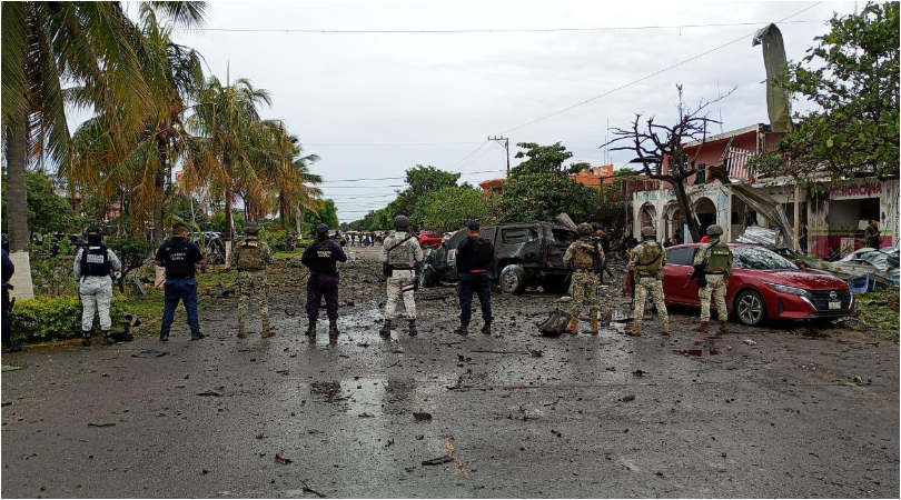 La Guardia Nacional, la Secretaría de la Defensa Nacional, la Secretaría de Marina y la Secretaría de Seguridad Pública estatal, mantienen la seguridad y el control del municipio de Coahuayana, ante un artefacto explosivo accionado.
