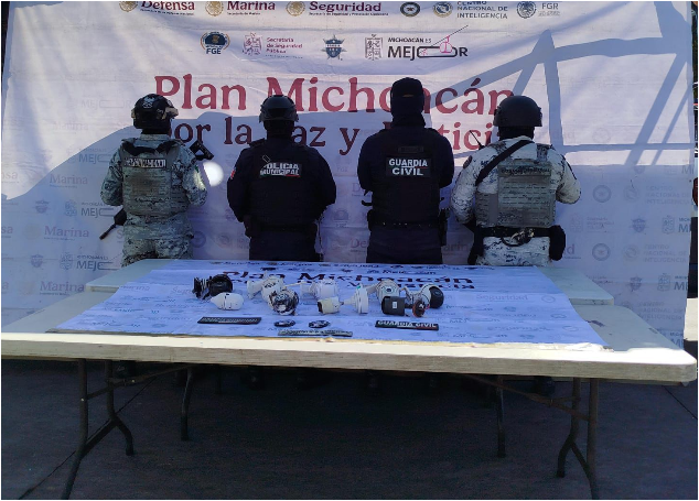Resultado de un operativo interinstitucional coordinado entre los elementos de la Secretaría de Seguridad Pública (SSP), de la Guardia Nacional (GN), y la Policía Municipal de Jacona, se aseguró un circuito de videovigilancia conformado por nueve cámaras, presuntamente utilizado por un grupo de la delincuencia organizada.
