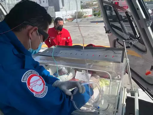 - El bebé de 7 horas de nacido fue atendido de manera especializada en el Hospital Infantil, gracias a su movilización aérea que duró tan solo 30 minutos.