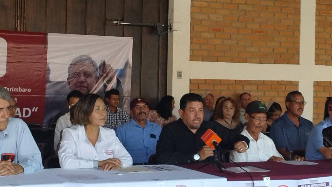 Hoy una decena de morenistas de Tarímbaro realizaron una rueda de prensa para anunciar que pedirían que se anularan los votos para presidente municipal y para diputado local, pues estaban en contra de los candidatos de Morena, PT y PVEM.