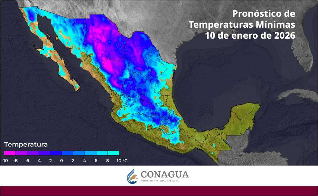 De -10 a -5 °C con heladas durante esta mañana: zonas serranas de Baja California, Sonora y Coahuila.