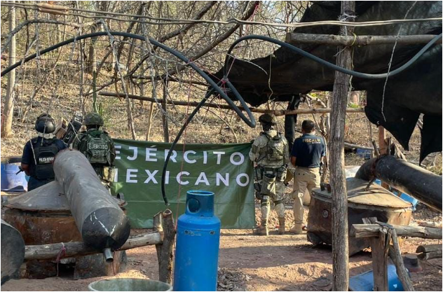 En esta demarcación el Ejército Mexicano encontró un sitio utilizado por presuntos miembros de la delincuencia organizada para la producción de metanfetamina.