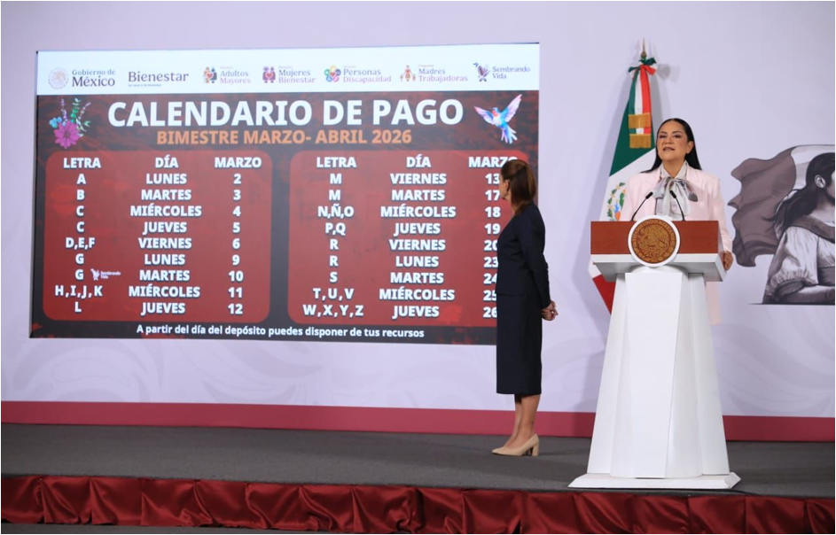 Ariadna Montiel agregó que, la fecha de pago, se puede consultar en la página oficial de la Secretaría de Bienestar: gob.mx/bienestar. Para brindar mejor atención, el depósito bancario se realiza de acuerdo con la letra del primer apellido de las y los derechohabientes y beneficiarios, bajo el siguiente calendario: