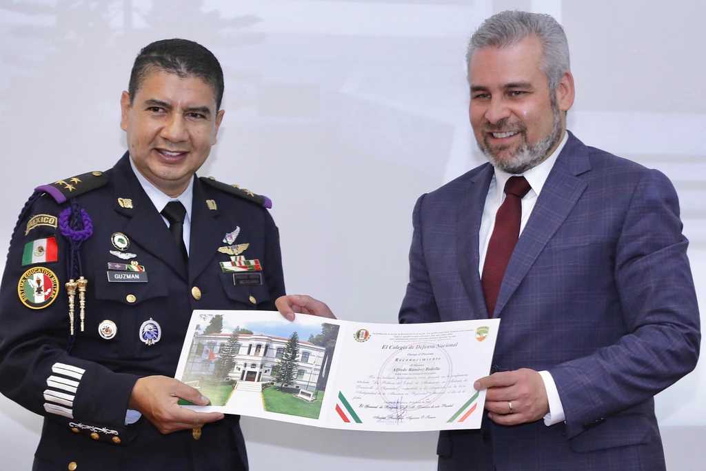 Durante su participación como ponente en la conferencia “La política del estado de Michoacán en materia de desarrollo y seguridad”, en el Colegio de Defensa Nacional de la Sedena, el mandatario destacó acciones de coordinación para avanzar en el proceso de construcción de paz en la entidad.