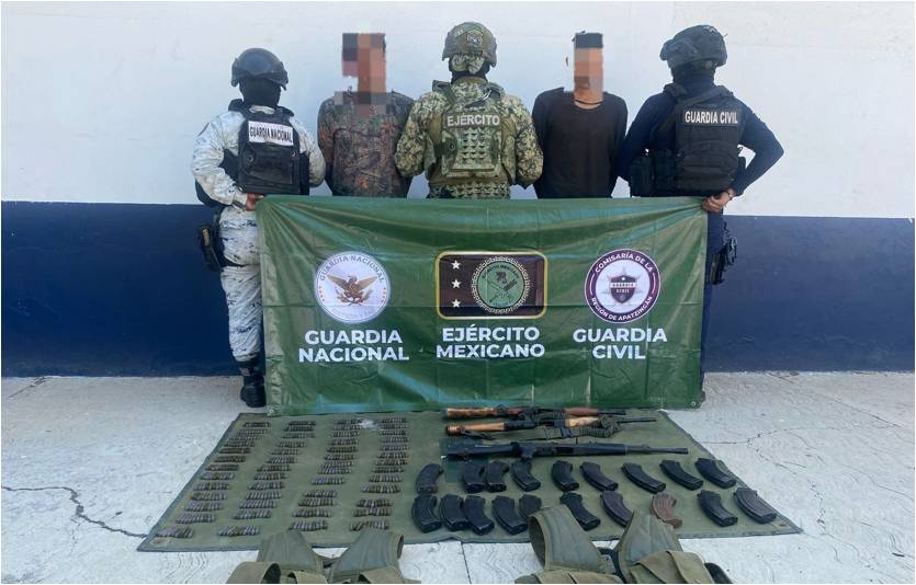Durante el despliegue de trabajos operativos en la localidad de Puerta Chica de esta demarcación, los efectivos de la Guardia Civil, el Ejército Mexicano y la Guardia Nacional, aseguraron en una zona serrana a los hombres mencionados.
