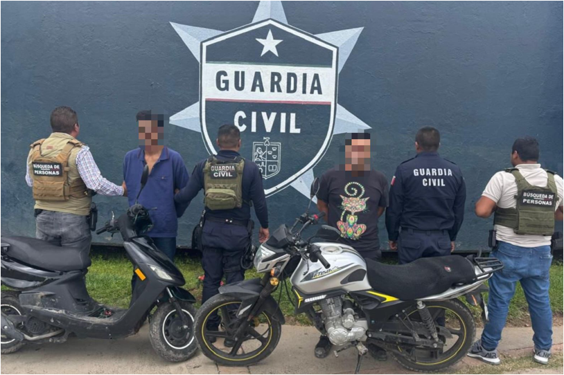 En la colonia Primo Tapia de la capital del estado los agentes de la Guardia Civil aseguraron a las personas mencionadas junto a dos unidades de la marca Italika con reporte de robo.