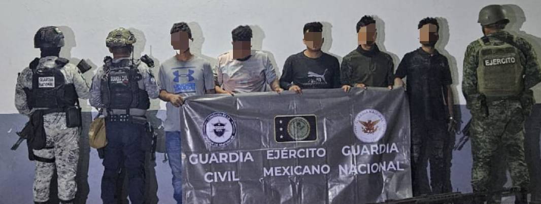 Agentes federales y estatales detuvieron en el municipio de Buenavista a cinco hombres y aseguraron 16 armas de fuego, entre ellas un fusil tipo barret antiblindaje, así como seis vehículos, de los cuales, tres contaban con reporte de robo.