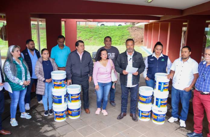 El presidente municipal, Julio Alberto Arreola Vázquez, realizó la entrega de 35 botes de pintura a diversas Telesecundarias del municipio.