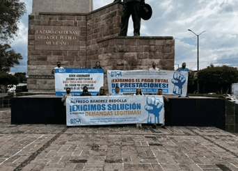 integrantes del Comité Ejecutivo Estatal del SITCBEM, se manifestaron de manera pacífica en el obelisco Lázaro Cárdenas en exigencia a que se cumplan los compromisos adquiridos con la sub secretaria del gobierno del estado y con la directora Tere Mora, con quien se asegura se tiene una deuda de prestaciones que no se han pagado y que a casi de un año se han echó impagables y esto ha afectado la nómina de los trabajadores.