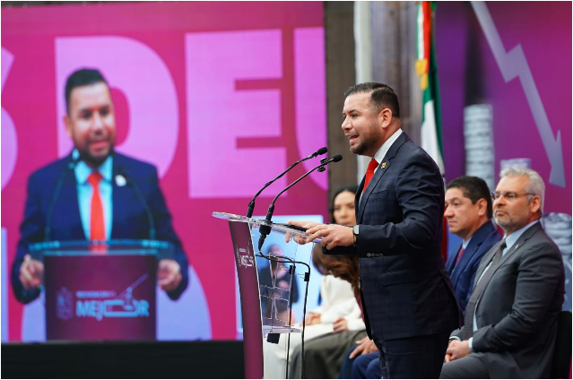 “Hoy nos convoca un acto de elemental justicia social y de profunda congruencia democrática y eso lo debemos y reconocemos a nuestro gobernador, Alfredo Ramírez Bedolla, porque seguimos haciendo historia al poner punto final y un candado definitivo a la herencia maldita del endeudamiento, esa vieja política que veía en el presupuesto un botín y en el futuro de nuestras hijas e hijos una moneda de cambio”, señaló el legislador.