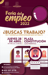 Ven y conoce las ofertas que diversas empresas tienen para ti, la cita es el próximo Jueves 28 de Abril, a partir de las 9:00 AM a 2:00 PM, en la Plaza Constitución.