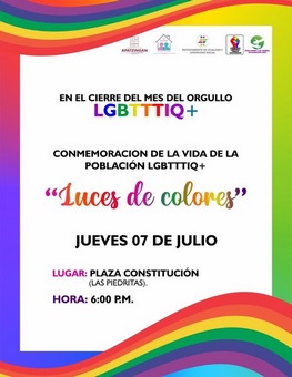 Acompañanos a conmemorar la vida de las y los que ya no estan en este plano fisico de la población LGBTTTIQ+ , en el cierre del mes del orgullo, este proximo 07 de julio, en punto de las 6:00 p.m.
