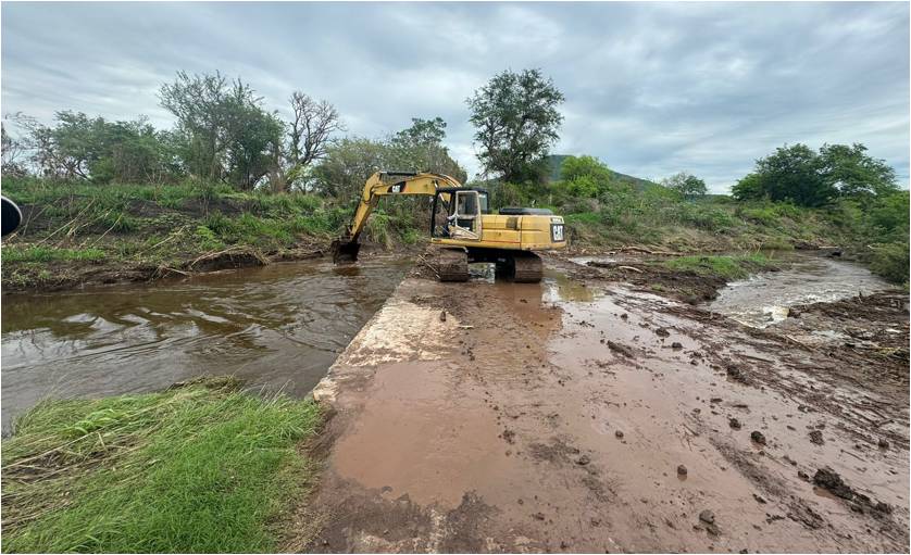 La presidenta municipal, Fanny Arreola, continúa trabajando para atender las necesidades de los habitantes de la zona rural afectados por las recientes lluvias. En respuesta a la situación crítica en la comunidad de El Mirador, el gobierno municipal envió hoy una excavadora con capacidad de levantamiento pesado para iniciar los trabajos de retiro de troncos y limpieza de maleza que obstruían los drenes transversales del vado que comunica con la comunidad de El Morado y otras rancherías del sur del municipio.
