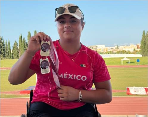 La mexicana María Guadalupe Navarro conquistó la medalla de oro en lanzamiento de disco F54/55, tras registrar 25.61 metros, en el Grand Prix Mundial de Para Atletismo Túnez 2025, en África. Es su segunda presea dorada en este certamen, tras su primer lugar en lanzamiento de jabalina F55.