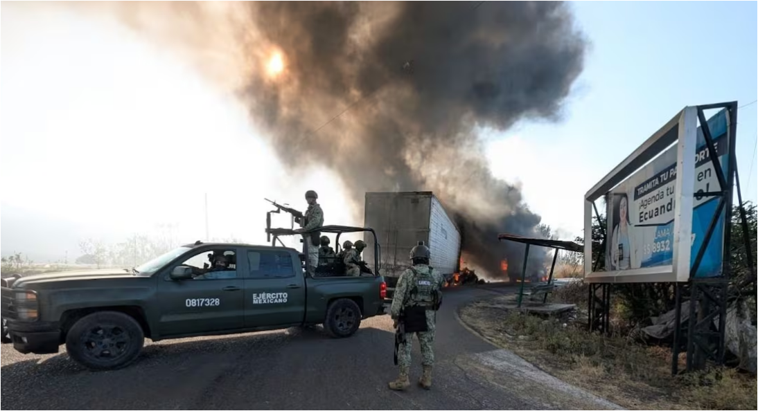 Guardia Civil libera bloqueos con apoyo de vehículos blindados; secretario encabeza operativo en región.