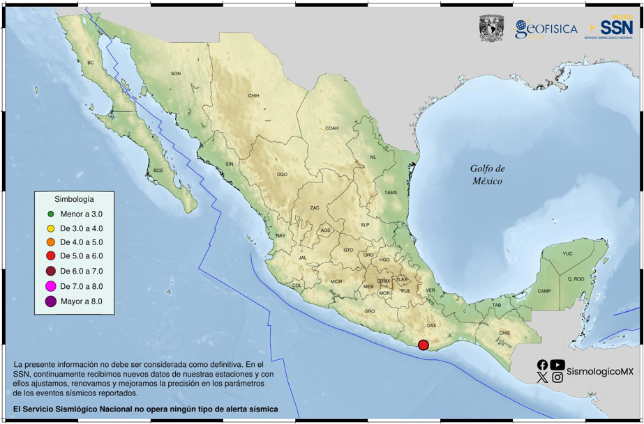 Hoy 8 de febrero, se registró un sismo de magnitud 5.7 en #PuertoEscondido, #Oaxaca, de acuerdo con el Servicio Sismológico Nacional (SSN).