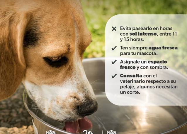La dependencia invita a prevenir la deshidratación y los golpes de calor en las mascotas evitando los paseos entre las 11:00 y las 15:00 horas, al ser el periodo de mayor radiación solar, para que no sufran quemaduras en sus patas, así como dándoles de beber agua de manera continua.