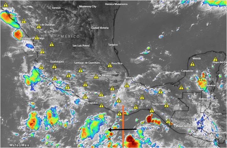 En zonas de tormenta existe el potencial de actividad eléctrica, rachas de viento y caída de granizo, por lo que se recomienda tomar precauciones.
