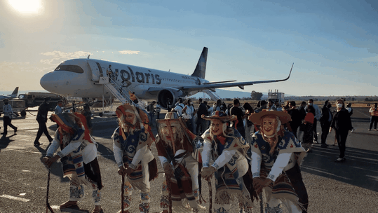 En su arribo inaugural, el avión Airbus A320 de Volaris arribó con todos sus lugares vendidos.