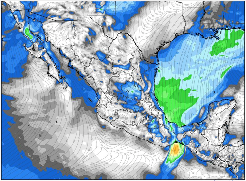 Finalmente, las rachas de viento continuarán dominando en gran parte del país, especialmente en la vertiente del Golfo de México y en el Istmo y Golfo de Tehuantepec, donde se estiman rachas entre 50 y 75 km/h, sin descartarse extremas de hasta 100 km/h.