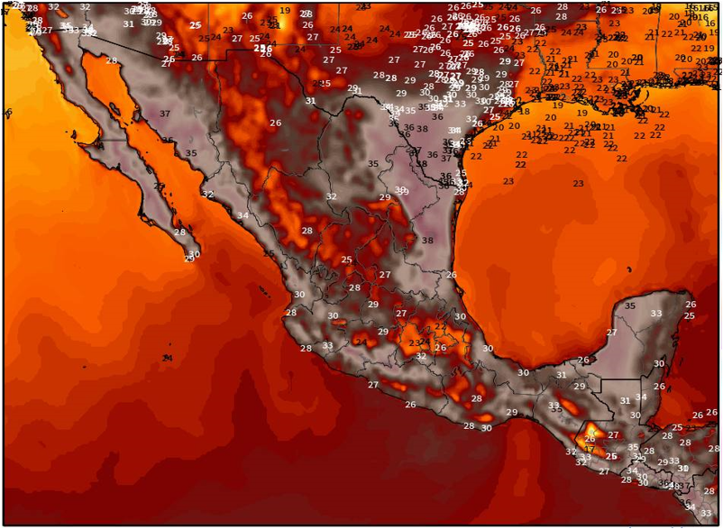 Durante la tarde se estiman temperaturas templadas a cálidas, entre 25 y 29°C, en el norte, bajío y centro. Sin embargo, se prevén valores calurosos de 30 a 40°C en el noroeste, noreste, oriente, occidente, sur y sureste, debido a la presencia de un anticiclón, una surada y el efecto föhn.