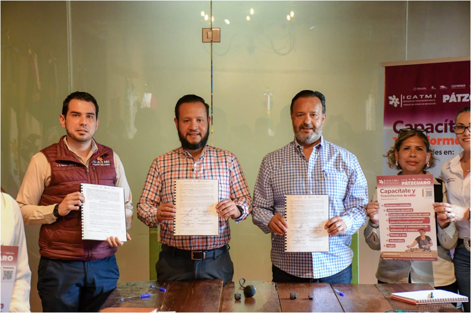 El presidente municipal, Julio Arreola, encabezó la firma de convenio de colaboración con el ICATMI, con el objetivo de ampliar las oportunidades de capacitación para las y los patzcuarenses.