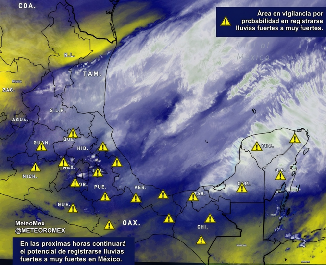 Recomendamos a la población tomar precauciones y estar atento a las próximas actualizaciones que emitiremos a través de #MeteoMex.