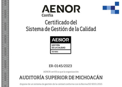 La Auditoría Superior de Michoacán (ASM), logró la certificación en Sistema de Gestión de Calidad ISO 9001:2015 con la casa certificadora AENOR; convirtiéndose en el primer ente de fiscalización en el país en obtenerla para la totalidad de sus procesos; tales como, Planeación, Fiscalización, Investigación y Substanciación de Responsabilidades Administrativas que desarrolla la dependencia.