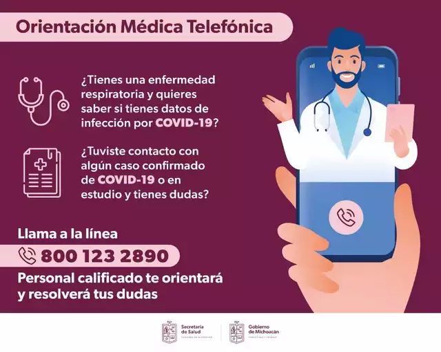 La Secretaría de Salud de Michoacán (SSM) mantiene en operación el servicio de atención y orientación en materia de enfermedades respiratorias, en la línea telefónica 800-123-2890.