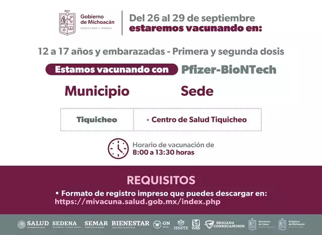 Para ello, del 26 al 29 de septiembre se activarán diversas sedes en municipios pertenecientes a esta Jurisdicción Sanitaria, donde se estarán atendiendo a embarazadas de 12 a 17 años con primeras y segundas dosis a partir de las 8:00 am.