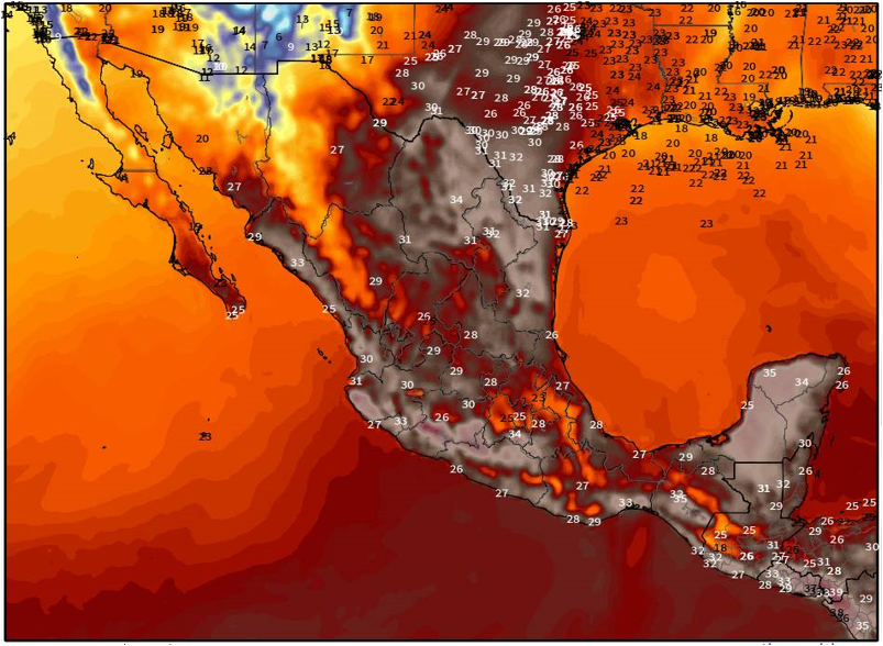 En el transcurso de la tarde, la masa de aire marítima polar favorecerá un ambiente fresco a templado, con temperaturas que oscilarán entre los 10 y 17°C en el noroeste y norte del país. En contraste, la circulación del anticiclón mantendrá condiciones estables y ambiente caluroso en el noreste, occidente, bajío, sur y sureste.