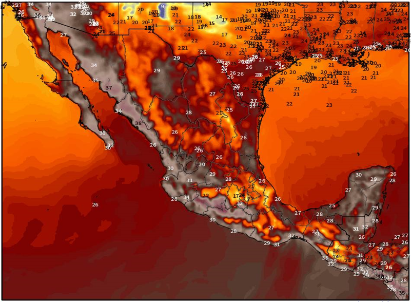 Durante la tarde, se prevén temperaturas templadas a cálidas, con valores de 20 a 27°C en el norte, noreste, oriente, bajío y centro del país. Sin embargo, el ambiente caluroso continuará dominando en el noroeste, occidente y sur, con temperaturas de 30 a 40°C.
