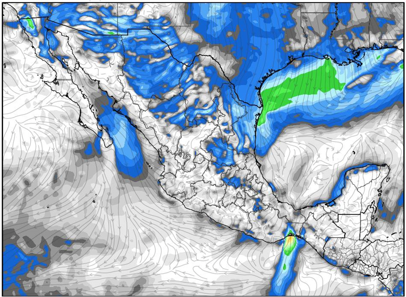 Miércoles, incrementando las lluvias y el viento conforme ingresa la masa de aire ártico en México.