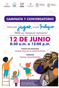Apatzingán, Mich.-  En el marco del Día Mundial contra el Trabajo Infantil, el DIF Municipal invita a los niños, niñas y jóvenes a participar en la caminata “Manos para jugar, no para trabajar” el próximo domingo 12 de junio a las 8:30 de la mañana iniciando afuera del museo Casa de la Constitución para concluir con un conversatorio en el Teatro Constitución.