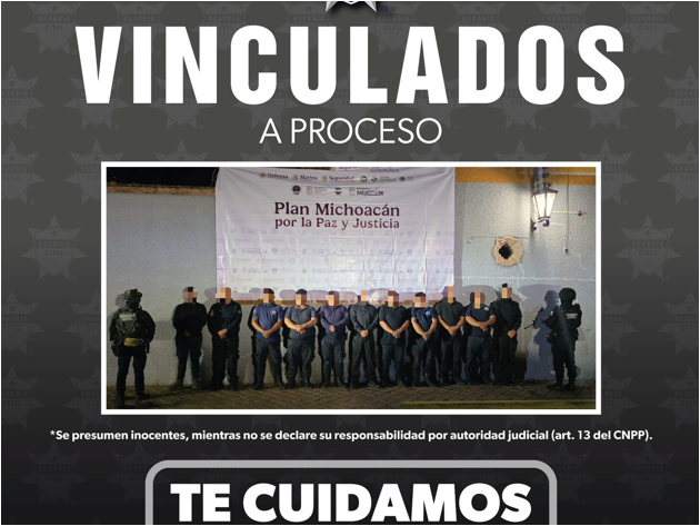 Derivado de la puesta a disposición realizada por la Secretaría de Seguridad Pública (SSP), un órgano jurisdiccional determinó la vinculación a proceso de 11 elementos adscritos a la Dirección de Seguridad Pública Municipal de Ecuandureo, por su probable responsabilidad en conductas constitutivas de delito, entre estas posesión de droga.