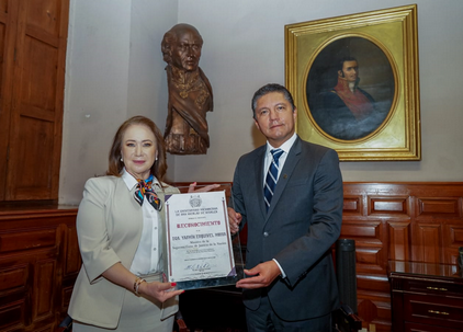 Por su destacada labor académica, el rector de la Universidad Michoacana de San Nicolás de Hidalgo (UMSNH), Raúl Cárdenas Navarro, entregó reconocimiento a la Ministra de la Suprema Corte de Justicia de la Nación (SCJN), Yasmín Esquivel Mossa.