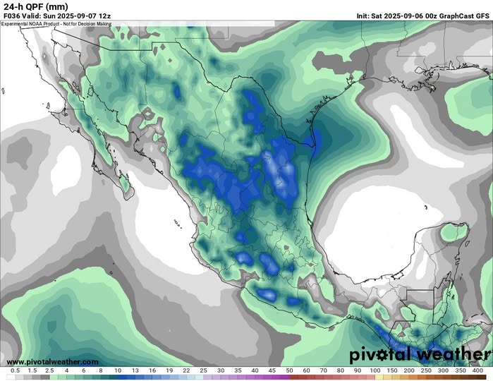 No se descarta de manera más dispersa entre #BajaCalifornia, #BajaCaliforniaSur, #Sinaloa, #Nayarit, #Guerrero, #Oaxaca, #Chiapas, #Querétaro, #Hidalgo, #Puebla, #Morelos, #Tlaxcala, #Veracruz, #Yucatán y #QuintanaRoo.