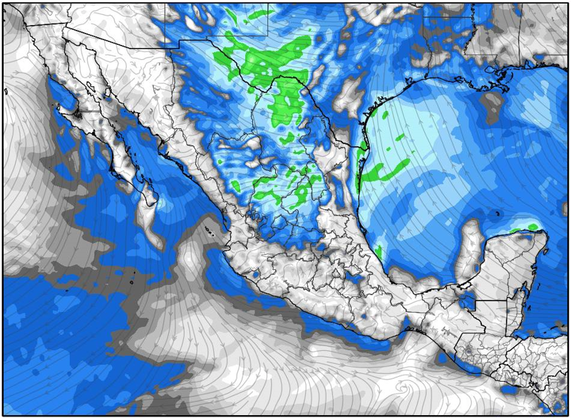 Hoy 14 de febrero, se pronostica el potencial de registrarse lluvias aisladas en la región norte del país, debido a la influencia de una baja presión localizada sobre el sur de Estados Unidos.