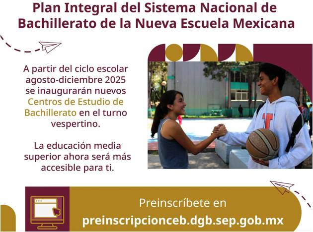Este esfuerzo forma parte del Plan Integral del Sistema Nacional de Bachillerato de la Nueva Escuela Mexicana, que impulsa el acceso equitativo a la educación media superior, bajo el principio de que la educación es un derecho, no un privilegio ni una mercancía.