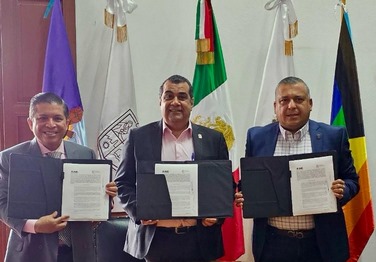 El secretario de Gobierno, Elías Ibarra Torres; el vocal Ejecutivo del Instituto Nacional Electoral (INE), David Alejandro Delgado Arroyo; y el coordinador del Sistema Penitenciario de Michoacán, Ignacio Mendoza Jiménez, firmaron un convenio de colaboración para facilitar y llevar este derecho a los centros penitenciarios.