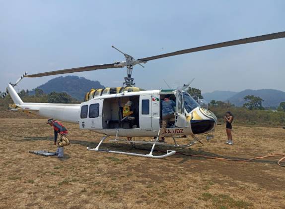 Señaló que el Gobierno del Estado ha destinado el equipamiento y personal para las labores de combate, acciones que se llevan a cabo por aire con el despliegue de una aeronave acondicionada con un helibalde y por tierra con las brigadas.