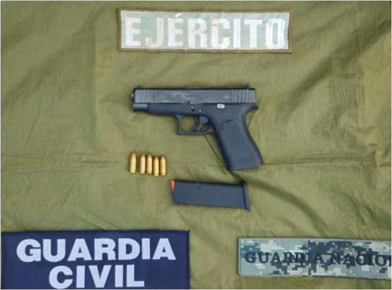 Dicha labor se efectuó en el municipio de Apatzingán dentro de las tareas disuasivas del delito, tras patrullajes en la colonia Centro el indiciado fue asegurado por los elementos de la Guardia Civil, Ejército Mexicano, Guardia Nacional y FGE, quienes localizaron entre sus pertenencias una pistola.